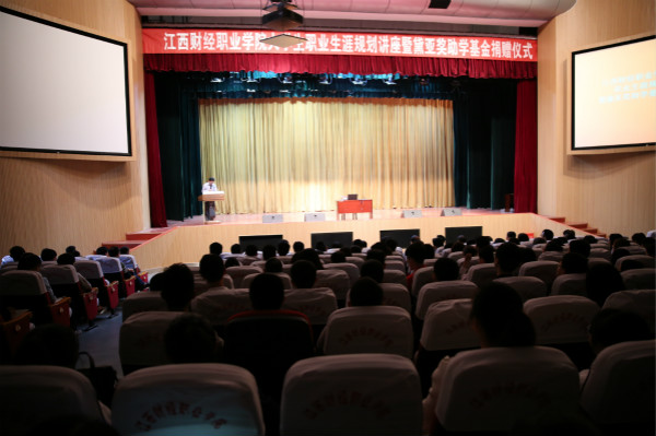 捐赠仪式结束后,广州市职业技能培训与鉴定评估专家、广东省秘书与营销师高级考评员、广州市社会组织评估专家吴春锦教授为2014级1000余名应届毕业生进行职业生涯规划指导。