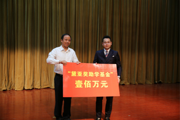 周剑处长首先介绍了“黛亚奖助学基金”的捐赠设立情况。陈期贤先生是我校07级财务管理专业毕业生,于2011年创立广州黛亚控股有限公司,经过5年的发展,该公司已经成为年销售额近6亿,广东房地产销售行业前三的企业。为了表达对母校的深厚感情,激励我校学子勤奋学习,帮助品学兼优的贫困学生完成学业、顺利就业,陈期贤先生向我校分期捐资100万元,设立“黛亚奖助学基金”。
