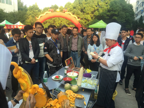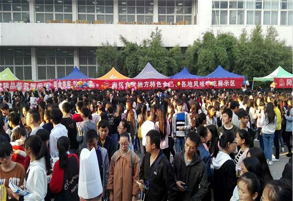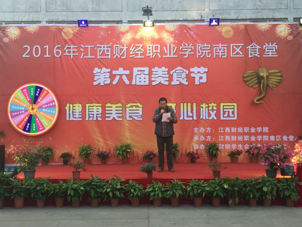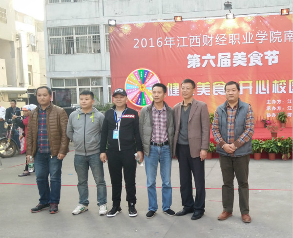 为倡导健康饮食文化,关爱学生的饮食健康,增强大学生安全食品意识,我校后勤管理处与南区食堂汉鑫饮食有限公司于2016年11月4日下午在南区食堂广场举办了我校第六届校园美食文化节活动,九江市浔阳区食品药品监督管理局陈局长、副校长张成斌、后勤处长张东海以及南区食堂汉鑫饮食有限公司负责人等出席了本届文化节。