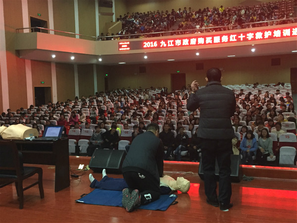 为进一步提高全校师生安全防范意识和互救自救能力,建设平安校园,根据江西省红十字会与教育厅《关于印发的通知》精神,结合我校实际情况和九江市红十字会救护培训中心工作安排,我校于11月3日至11月10日对全校16级四千余名学生进行应急救护普及培训,于11月13日对团委选送的30名学生会干部进行应急救护员持证培训。