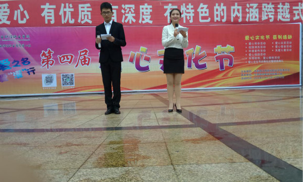 为培养大学生志愿服务精神,传承中华民族优良传统,呼吁青年大学生参加爱心活动,打造我校爱心文化品牌,11月17日,我校第四届爱心文化节开幕式在半月台成功举行。