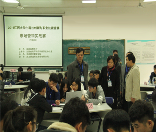 2016年11月12日至13日,我校成功举办了2016年江西省大学生科技创新与职业技能竞赛专科组沙盘模拟经营和市场营销实战两项赛项。江西省大学生科技创新与职业技能竞赛是由江西省教育厅主办、江西省高等院??萍伎旃易艹邪?、用友新道科技股份有限公司协办。我校为以上两项赛事的具体承办方。本届沙盘模拟经营大赛和市场营销实战大赛吸引了江西外语外贸职业学院、宜春职业技术学院、南昌大学共青学院、九江学院等31所高校的72支队伍参加,参赛选手共计383名。