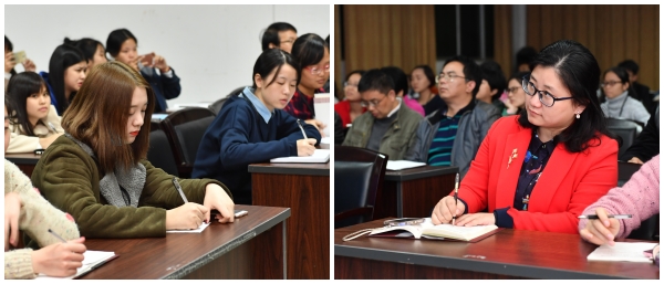报告会邀请到中共江西省委党??粕缃萄胁扛敝魅我α两淌?,作《十八届六中全会精神解读》专题讲座。姚教授以《在全面从严治党中增强党性修养》为题,从全面从严治党的重大意义、十八届六中全会的主要亮点、党性修养缺失的具体表现和新时期如何提高党性修养四个方面,用翔实的资料、真实的感受,生动讲解了党的十八届六中全会精神的重大意义、框架结构,对党的十八届六中全会的新思想、新观点、新要求做了详细分析和深刻的解读。整场讲座理论性、思想性、操作性强,对我们全面理解和把握十八届六中全会精神具有很好的指导意义。
