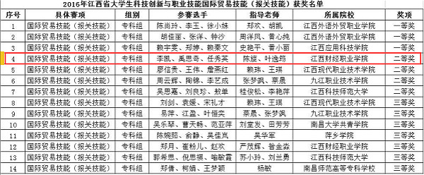 近日,从江西省大学生竞赛网获悉,我校学子在由江西省教育厅主办,江西外语外贸职业学院承办的2016年江西省大学生省赛报关赛项中喜获团体二等奖1项,团体三等奖1项。