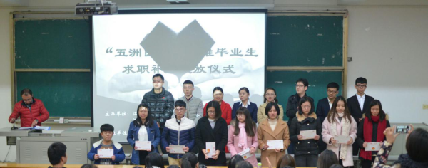 11月25日下午,我校爱心社在综合楼阶梯五教室举办“五洲医疗”困难毕业生求职补贴发放仪式。学校爱心社、招就处、团委负责人,杭州五洲医疗设备有限公司行政总监黄美球等3人,学校14级残疾、低保户学生90人和部分学生代表参加此次活动。