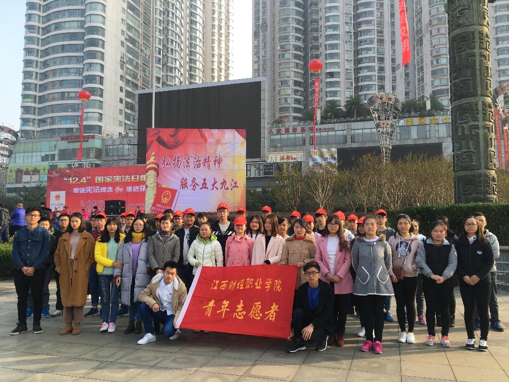 12月1日上午,由九江市法治建设领导小组办公室、市委宣传部、市直属机关工作委员会、市司法局、市普法治市领导小组办公室主办,我校联合参加的“12· 4”国家宪法日大型宣传活动在九江市和中广场举行。宣传统战处和团委派出50名志愿者参加现场宣传活动,并代表全校师生向宪法作庄严宣誓。