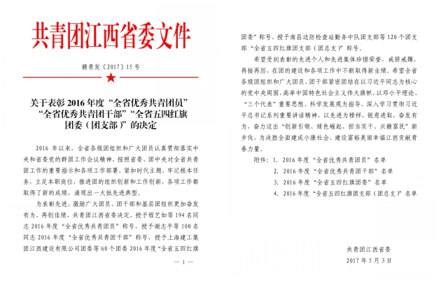 日前,南昌校区团委荣获2016年度“江西省五四红旗团委”荣誉称号。