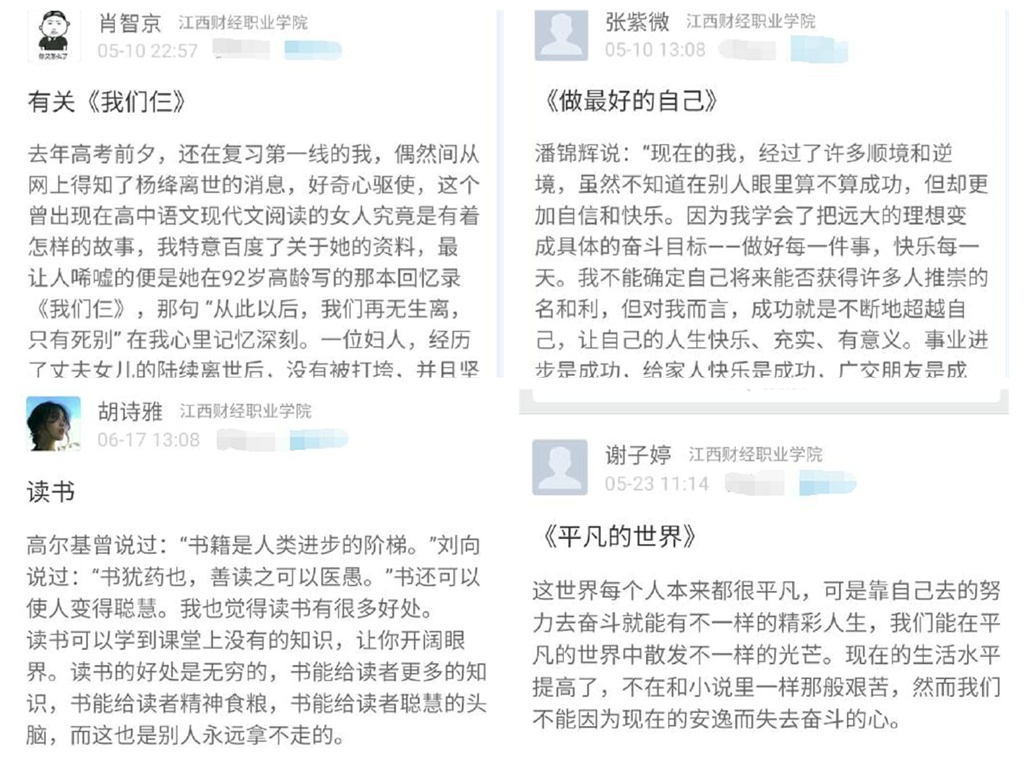 本次活动中参与人数达1500余人,发表阅读心得近1800份,经评选,15工管4班钟志、16会计6班肖智京等10名同学荣获“阅读之星”称号,15会审1班方华荣、16会计15班欧阳国梁等20名同学被评为“活动积极分子”。