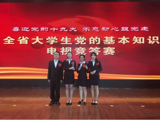 10月11至12日,由省委教育工委、省教育厅主办的江西省大学生党员“喜迎党的十九大,不忘初心跟党走”党的基本知识电视竞答赛在江西工业贸易职业技术学院隆重举行。我校选派的由尧圆红、李琳、赖明慧、黄仁威4名学生组成的参赛队在此次比赛中经过激烈角逐,从45所高职高专院校中脱颖而出,喜获高职高专院校组团体二等奖。
