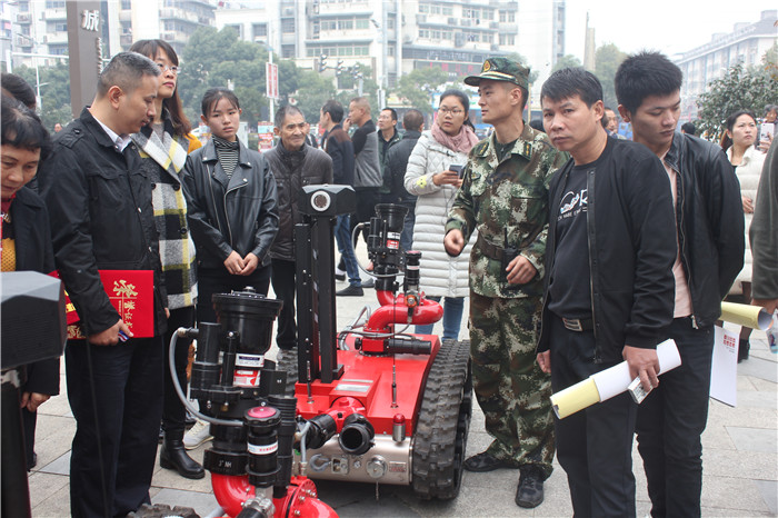 现场,不同功能的消防车、各种抢险、救援、灭火器才首次在街头展示,学生登上消防车,感受消防车的内部设施,了解消防设备的用途。同时消防官兵还开展了模拟应急疏散、云梯营救、高空速降、火场扑救等场景,并现场指导使用灭火器扑救初期火情。针对火灾的特点、灭火常识、灭火器的使用、逃生自救方法等基本内容对师生进行培训,并在培训会后组织应急疏散演习。