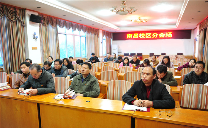11月22日下午,学校在综合楼七楼报告厅举办学习贯彻党的十九大精神报告会,校党委副书记、校长林火平教授为全校教职工党员作专题辅导报告,校本部280余名教职工党员现场参加了报告会,南昌校区全体党员通过同步视频参会。报告会由校党委副书记、常务副校长何先应主持。