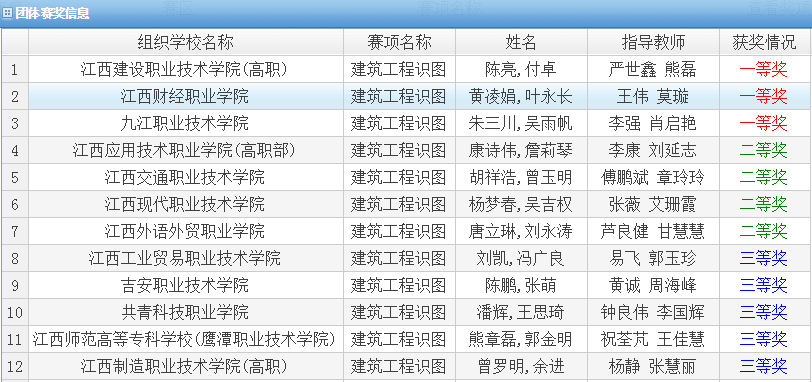 11月11日,2017年江西省职业院校建筑工程识图竞赛(高职组)在南昌举行,由江西省教育厅首次主办,在赛项设计及竞赛规则上均与国赛接轨,我校派出由财税金融(建筑工程)学院王伟、莫璇担任指导教师,黄凌娟、叶永长两位同学组成的代表队参赛。近日,从江西省职业教育综合管理平台获悉,我校代表队在全省26所高职院校代表队中脱颖而出,以总分第二的好成绩荣获一等奖。