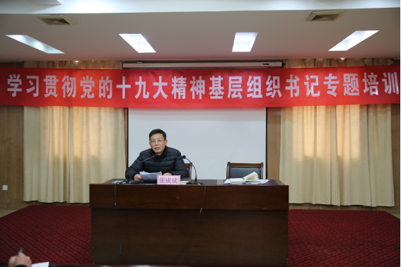 为深入学习贯彻党的十九大精神,不断提升学校党总支书记、支部书记及党务工作者的思想政治素质和党务工作水平,12月13日下午,我校在培训中心二楼会议室举办了基层组织书记和党务工作者学习贯彻党的十九大精神专题培训班,全校党总支书记、支部书记、党务工作者近30人参加了培训,校党委委员、副校长张成斌出席培训班开班仪式并讲话,会议由党校负责同志主持。