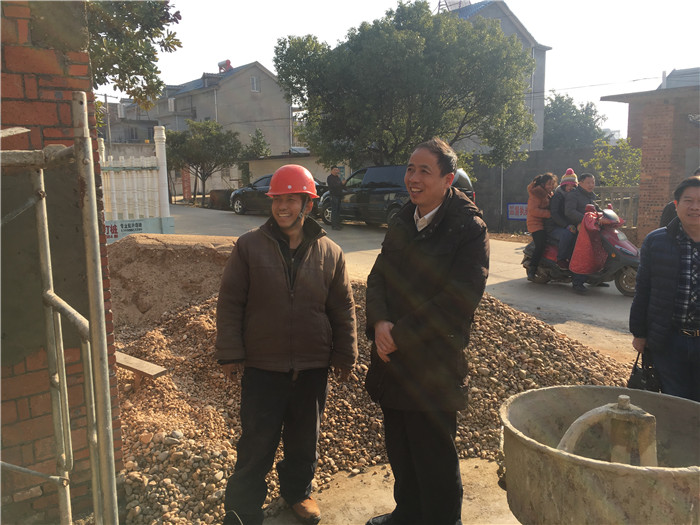 结队对帮扶户占建平房屋整修施工现场,林书记要求一定要保质保量并且注意安全。