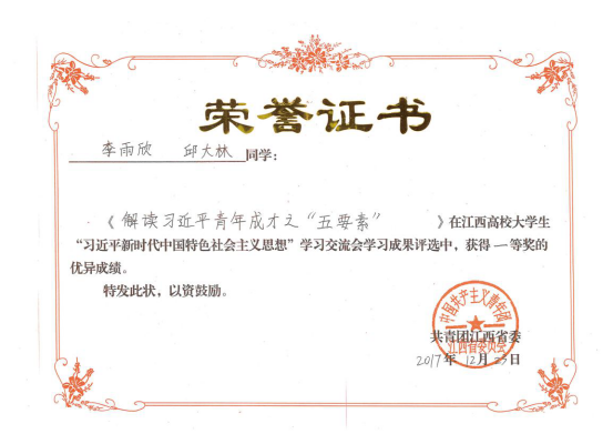 12月23日,全省高校大学生“习近平新时代中国特色社会主义思想”学习交流会在江西师范大学举行。由我校教师指导的17级金融管理1班团支部同学撰写的论文《解读习近平青年成才之“五要素”》获会议一等奖。我校获奖学生应邀参加交流会并做主题发言。