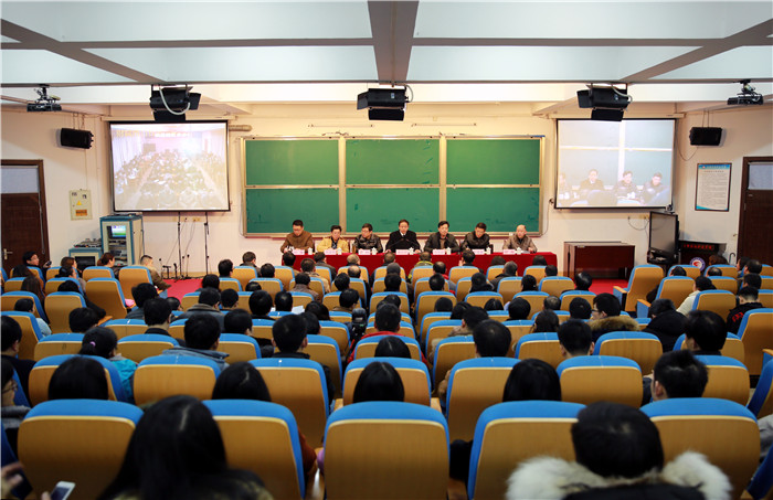 1月21日上午,学校在综合楼七楼学术报告厅召开全校教职工大会。党委书记林火平和全体领导班子成员出席,全体教职员工参加大会,南昌校区通过同步视频参会?;嵋橛傻澄笔榧?、常务副校长何先应主持。