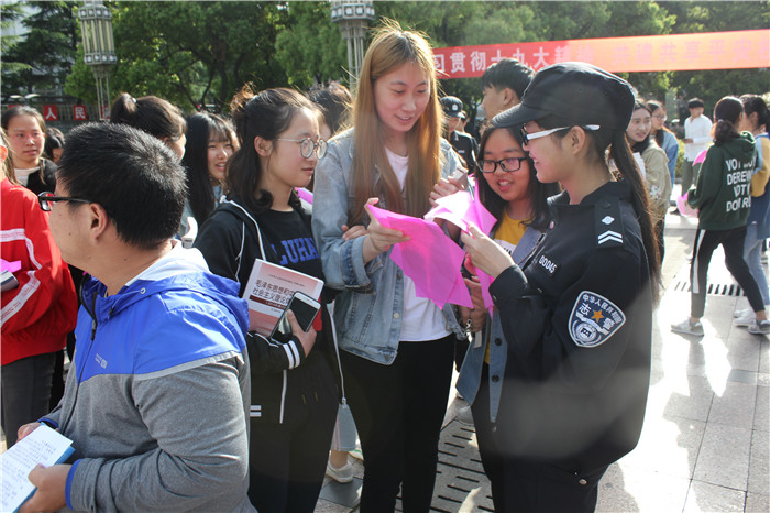 4月15日是我国第三个全民国家安全教育日。为深入贯彻落实党的十九大精神和中央、省政法工作会议精神,进一步加强我校社会治安综合治理,深入推进“平安校园”建设,根据省综治办印发的《关于开展综治(平安建设)宣传月活动的通知》我校4月16日下午在文化广场开展了“学习贯彻十九大精神?共建共享平安校园”为主题的综治(平安建设)暨国家安全日主题宣传活动。