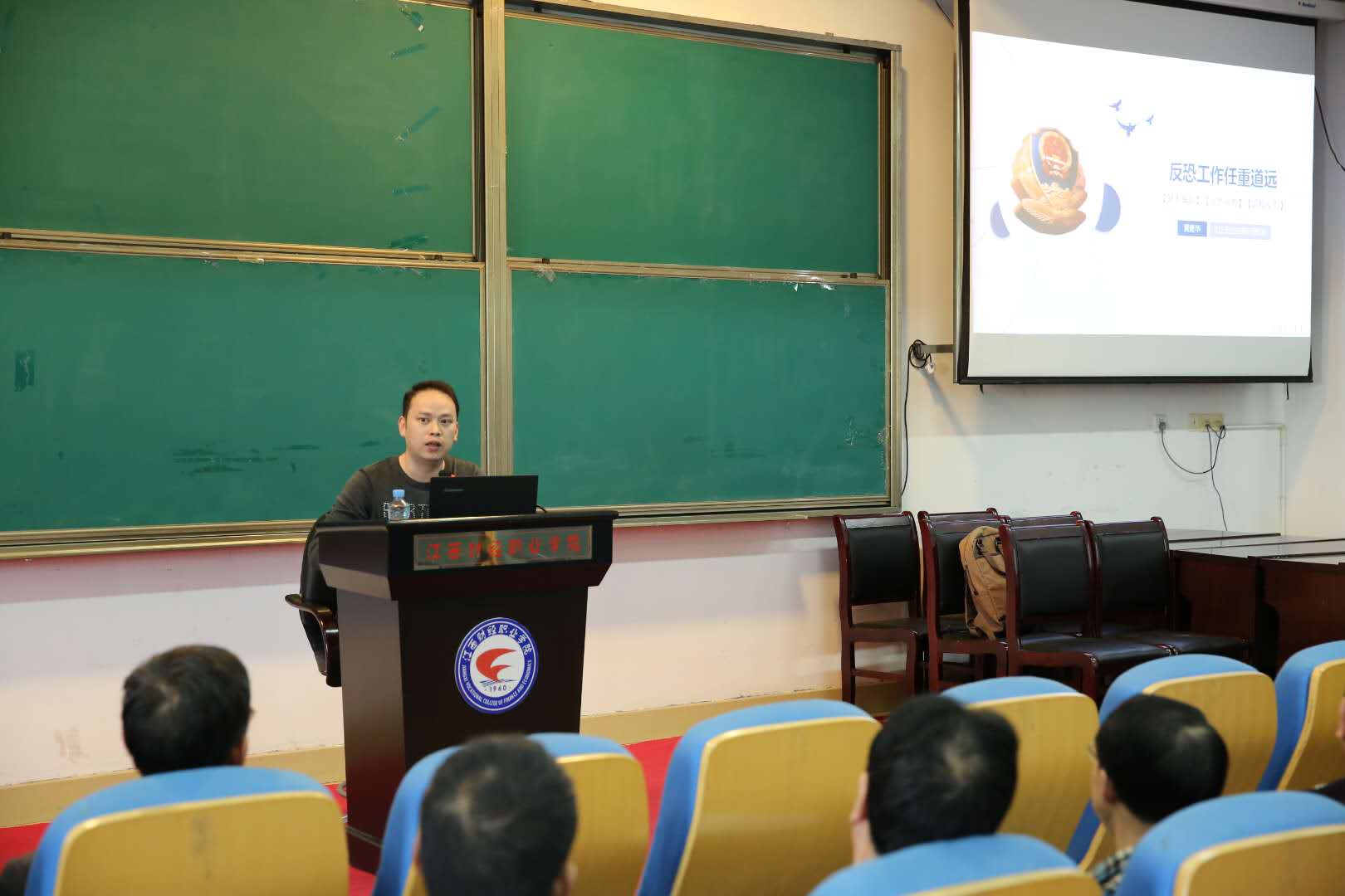“平不肆险,安不忘?!薄5谌鋈窆野踩逃盏嚼粗?,为了切实做好国家安全教育工作,了解高校所面临的国家安全形势,提高师生的国家安全意识,4月17日下午,九江市公安局反恐支队教导员黄勇华警官在我校综合楼七楼学术报告厅做了题为《反恐工作任重道远》的专题讲座。教职工300余人参加了报告会,报告会由安全保卫处处长主持。