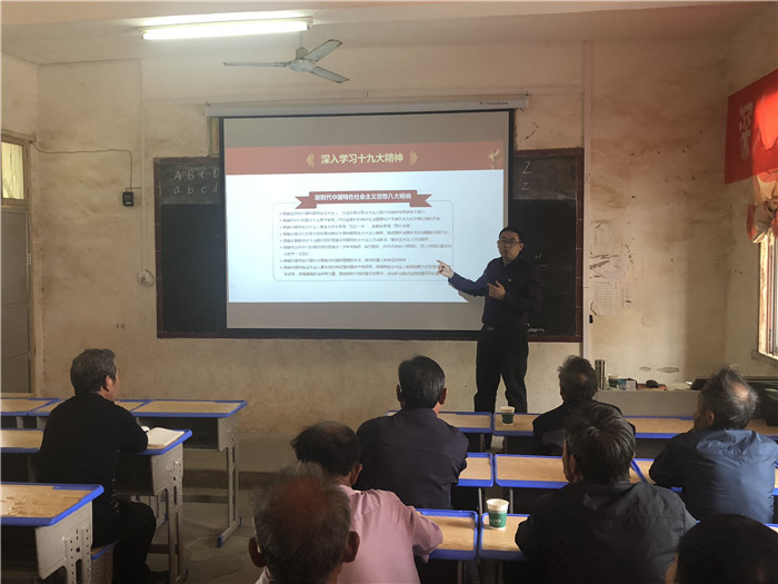 4月20日,江西财经职业学院机关党总支负责人黄亮老师来到我校扶贫点--都昌县和合乡桥岭村开展主题党课宣讲。