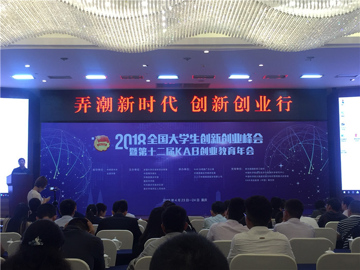 4月23、24日,2018年全国大学生创新创业峰会暨第十二届KAB创业教育年会在重庆举行?;疃浴芭毙率贝?创新创业行”为主题,旨在深入实施《中长期青年发展规划(2016-2025年)》和“大学生创业引领计划”,进一步发挥团学组织在实践育人、文化育人、服务育人等方面的优势,完善大学生创新创业的交流和教育平台,在大学生群体中激发和?;て笠导揖?,鼓励大学生投身创新创业,促进大学生服务国家创新驱动发展战略,建功新时代。我校作为KAB项目参与高校,与来自全国的其他高校代表,以及2017年大学生创业英雄百强称号获得者和部分大学生创业者代表近1000人参加了此次盛会。