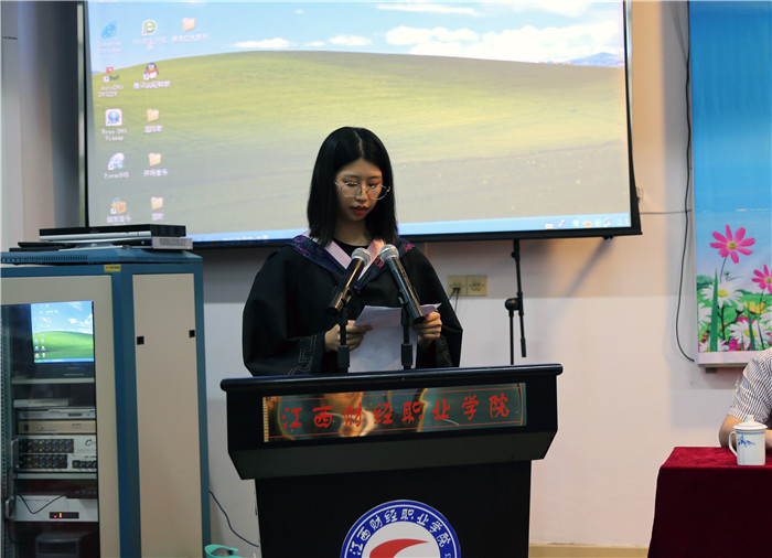 毕业生代表刘亦杏回忆了从踏入财院校门起到毕业期间生活与学习中的的点滴美好回忆以及与她在这四年中所认识到的财院精神,分享了她的收获与感悟,感谢母校、导师为学生成长成才所付出的努力和支持。