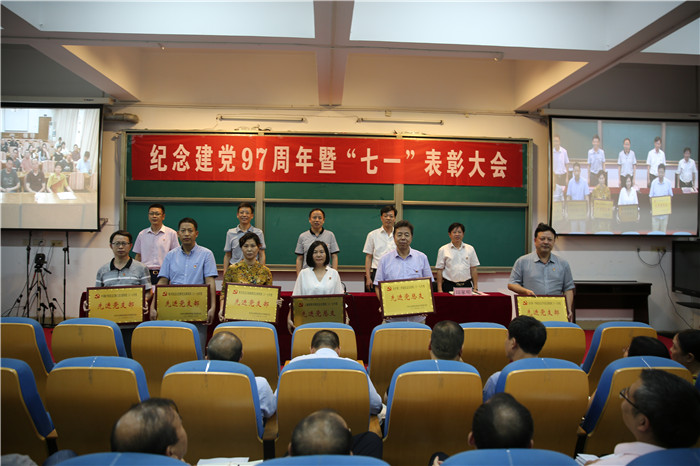 为纪念中国共产党建党97周年,激励广大党员干部进一步振奋精神, 6月30日上午,我校在七楼报告厅举行纪念党建97周年暨“七一”表彰大会,表彰一年来在学校教育改革发展中涌现出来的先进基层党组织、优秀党务工作者和优秀共产党员。校党委书记林火平出席并讲话,在家的党委班子成员、全体教职工党员共280多人参加了大会,南昌校区全体党员通过同步视频参会。大会由校党委委员、副校长张成斌主持。