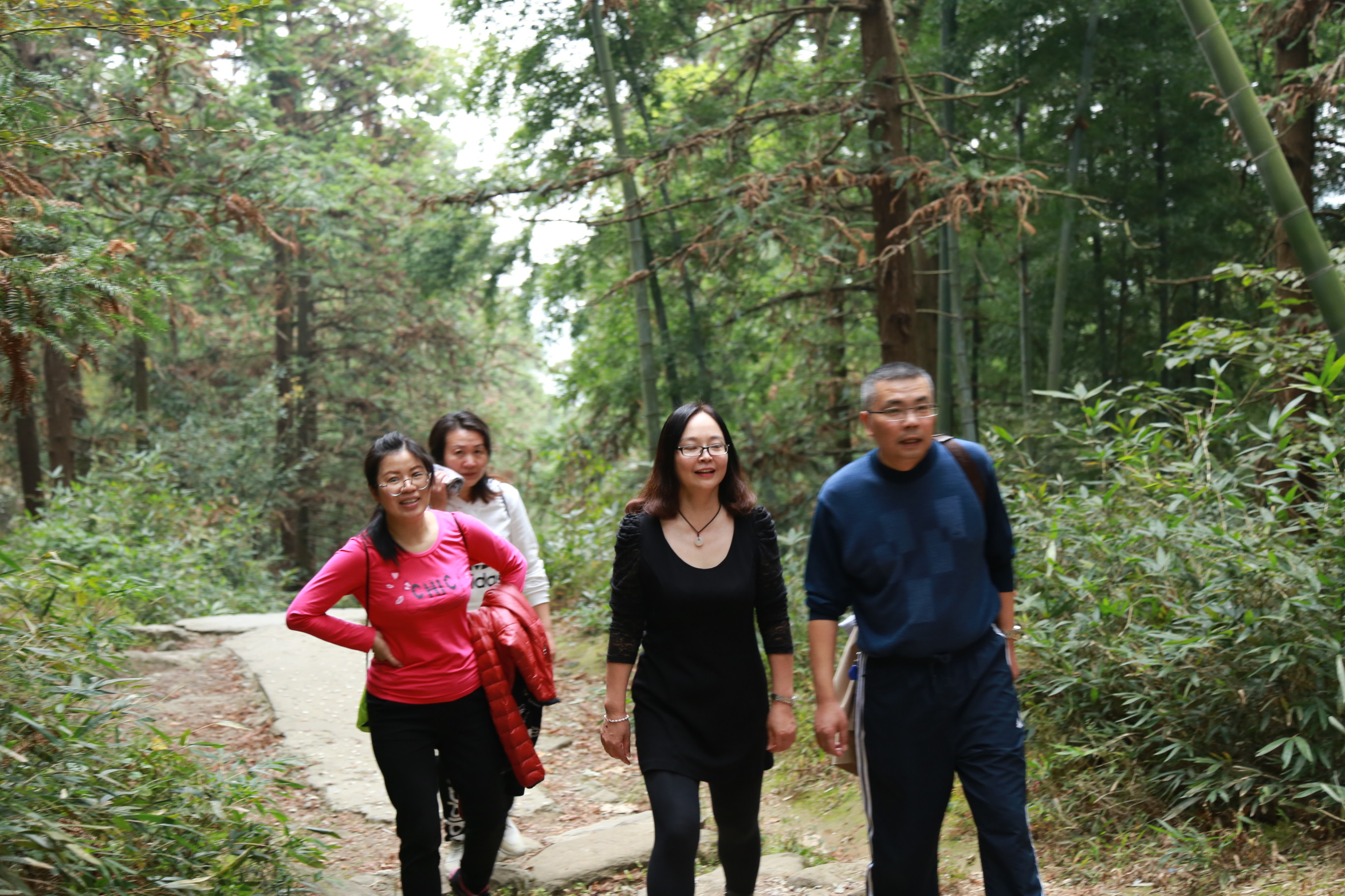 教职工们三三两两,结伴同行,一路欢声笑语拾阶而上,或登高望远、或曲径探幽,在轻松和愉悦中享受登山的乐趣。