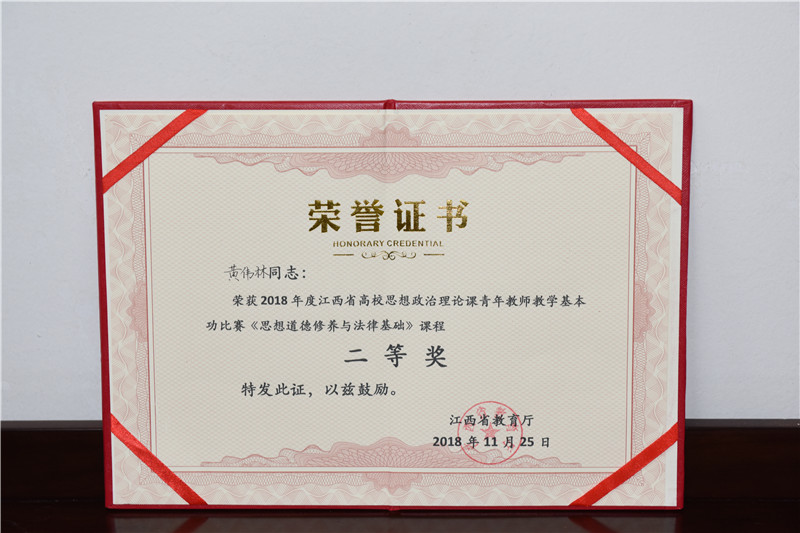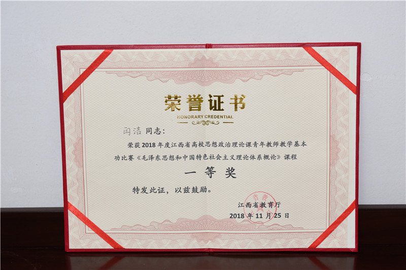 11月24日,2018年度全省高校思想政治理论课青年教师教学基本功比赛在南昌航空大学举行,经过激烈比拼,我校思政部选派的闫洁、黄伟林分别获得“毛泽东思想和中国特色社会主义理论体系概论”、“思想道德与法律基础”课程一等奖、二等奖,是全省高职高专院校比赛成绩最好的。