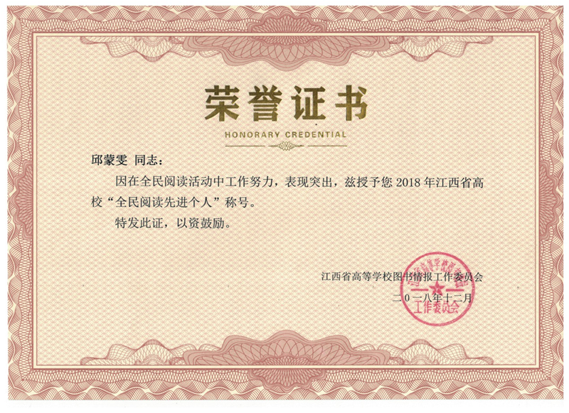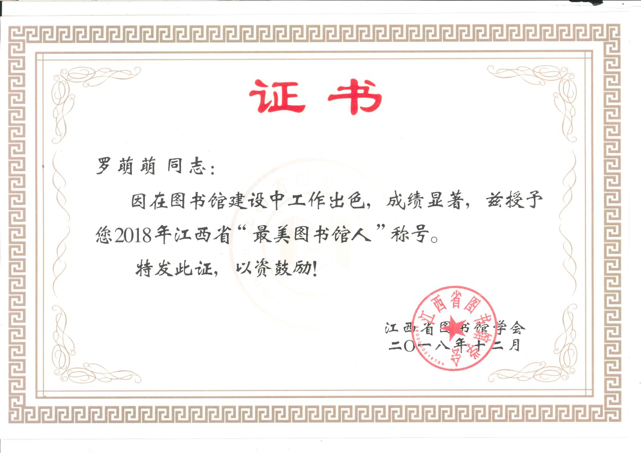 12月20日,江西省图书馆年会在南昌召开。会上对全省高校图书馆在2018年工作锐意进取、勇于创新的先进单位和个人进行了表彰。我校图书馆荣获江西省高?!叭裨亩料冉ノ弧焙汀白蠲劳际楣荨彼钍馊?,馆员邱蒙雯获江西省高校图书馆“全民阅读先进个人”,馆员罗萌萌获全省 “最美图书馆人”。