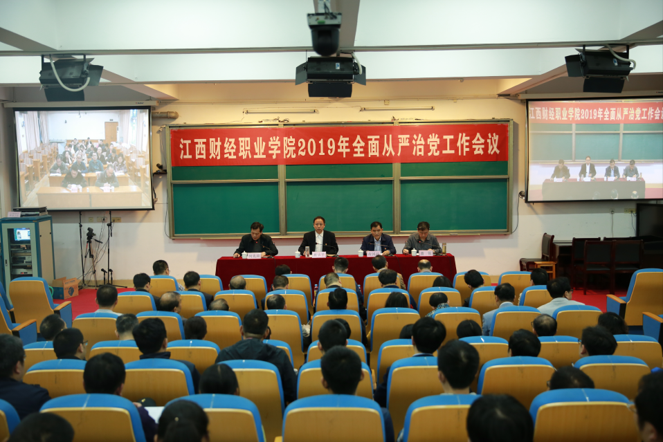 为深入贯彻落实十九届中央纪委三次全会和省纪委十四届四次全会精神、财政部全国财政党风廉政建设工作会议、省财政厅全面从严治党工作会议精神,全面落实党风廉政建设责任制,深入推进学院全面从严治党工作向纵深发展,我校于5月7日下午在七楼报告厅召开2019年全面从严治党工作会议。省纪委省监委驻厅纪检监察组副组长黄国品莅临会议指导,校党委书记林火平代表学校党委作了学校全面从严治党工作报告,校党委副书记、纪委书记曹锐代表学校纪委作了纪委工作报告,会议由校党委副书记、常务副校长何先应主持,校领导班子成员、中层领导干部、各党总支、各党支部书记及委员、二级机构负责人参加了会议,南昌校区通过同步视频参会。