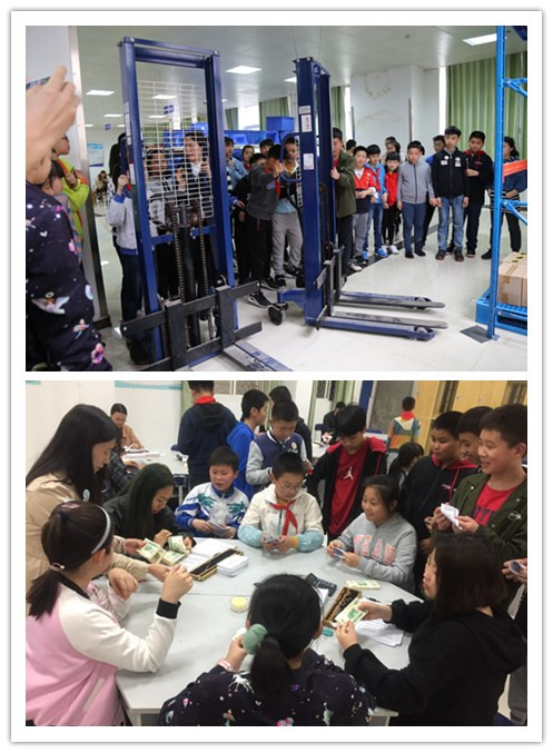 根据职教周活动安排, 5月7日下午,我校面向社会开放校园,邀请九江市湖滨小学学生参观了物流、旅游管理及会计实训中心。我校师生为前来观摩的小学生介绍了展示了物流、茶艺、调酒及点钞等技能。