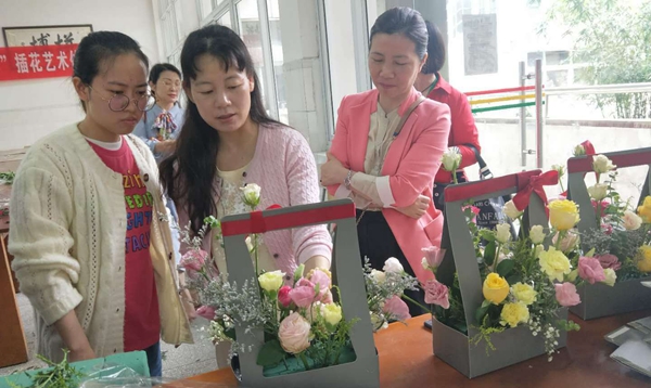 插花体验 “信手拈花,舞动年华”,我校师生心灵手巧,拈出一派“春意盎然”。