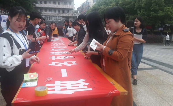 开幕式中,学生热情手签“做一名有情怀的传统文化传承者”,让传统文化薪火相传。