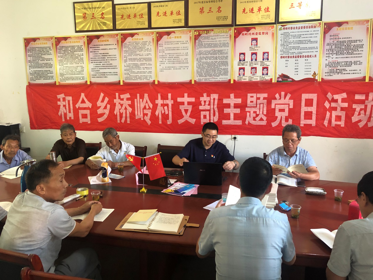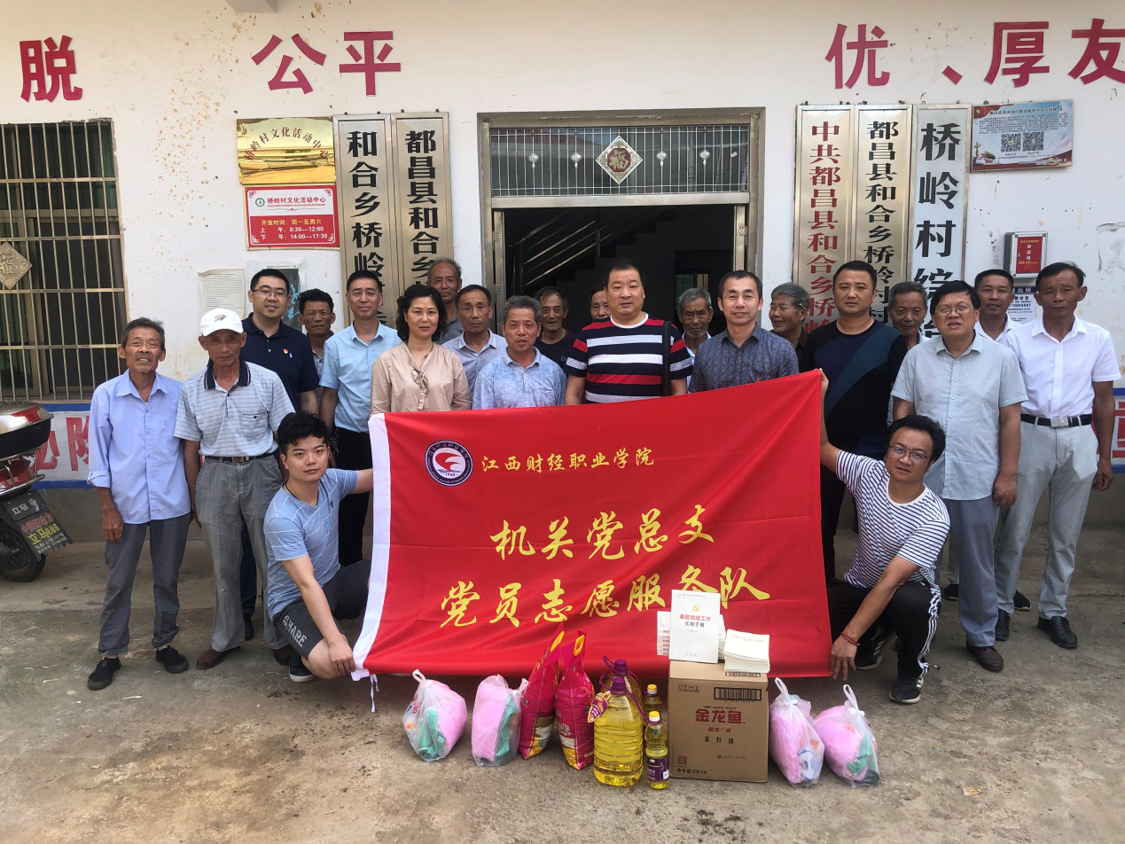 2019年6月11日,江西财经职业学院机关党总支负责人黄亮和总支委员、支部书记代表张东海、熊水金、郭红一行来到我校扶贫点--都昌县和合乡桥岭村开展主题党日活动。
