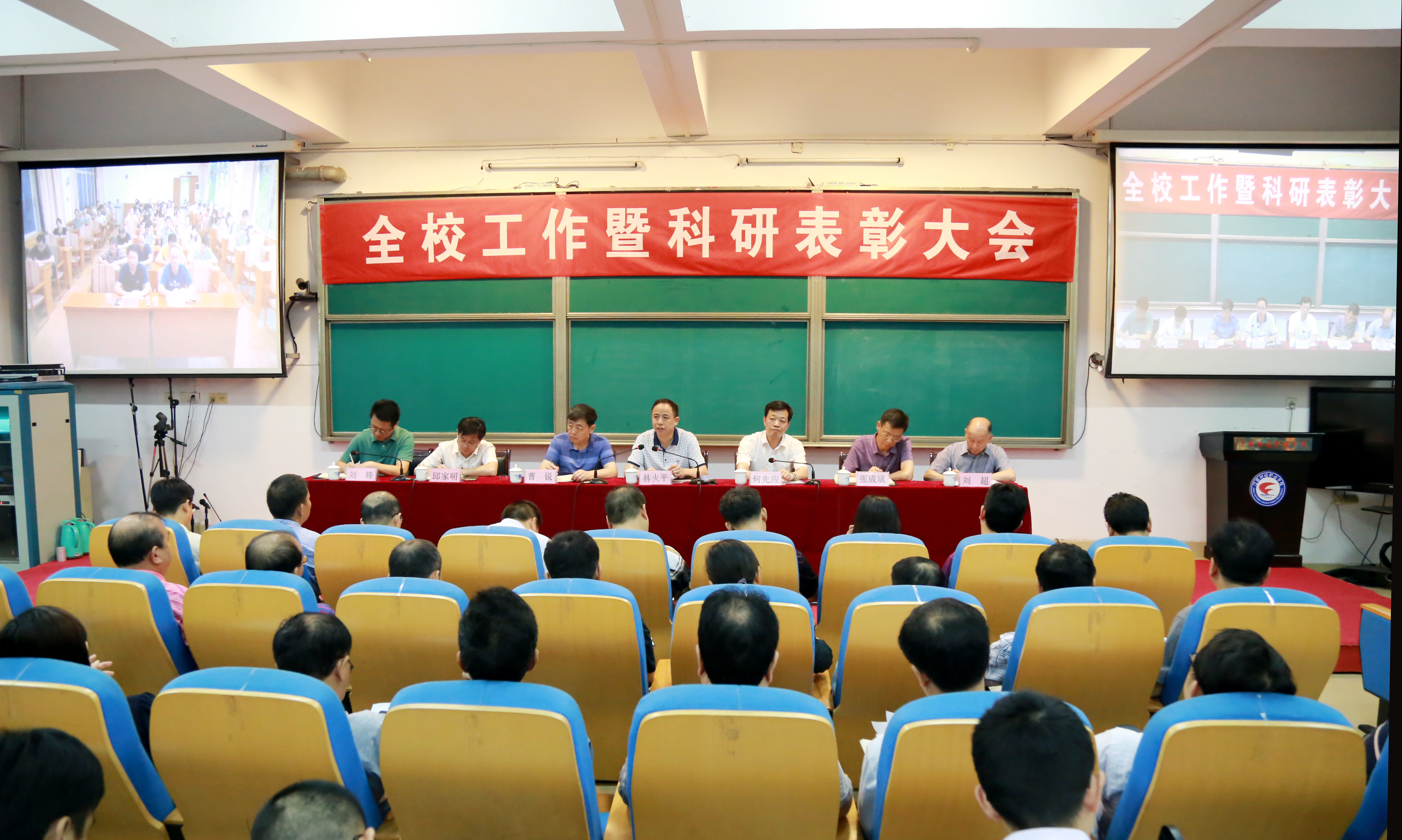 7月9日上午,全校工作暨科研表彰大会在综合楼七楼学术报告厅举行。校党委书记林火平和领导班子成员出席,全体教职员工参加大会,南昌校区通过同步视频参会?;嵋橛尚5澄笔榧?、常务副校长何先应主持。