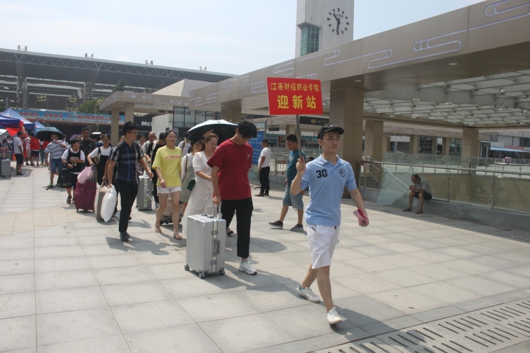 9月1日,伴着清晨的朝霞,志愿者们早早的到达了车站新生接待处,开始了一天的迎新工作。出站口、接待处、上车处,处处可以看到志愿者们忙碌的身影、听到他们热情耐心的讲解和指引。在人潮涌动的出站口,志愿者高举“江西财经职业学院”引导牌,在车站新生接待处,志愿者与等待班车的新同学和家长们亲切地交谈,帮助他们将行李搬运上车。