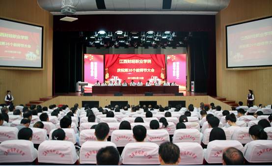 9月10日,我校庆祝第35个教师节大会在英才交流中心隆重举行。省财政厅巡视员王斌与全体教职工共同庆祝教师节,会议由校党委书记林火平主持,省财政厅人事教育处副处长邹有国、学校领导班子全体成员出席,校本部教职员工、离退休教师代表、南昌校区教师代表,学生代表参加会议。