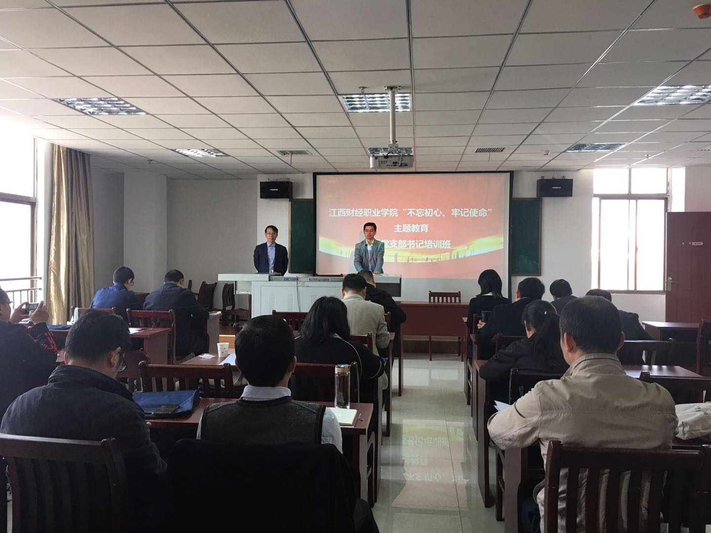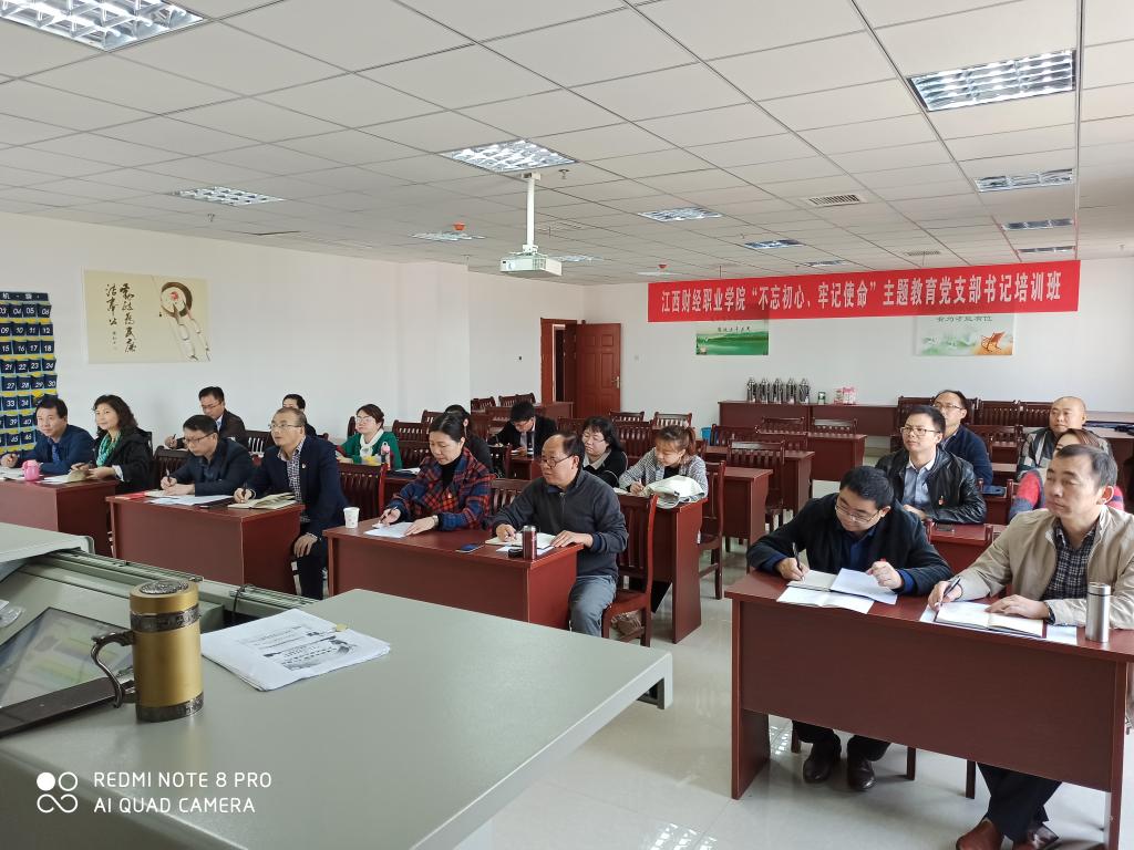 根据中央开展第二批“不忘初心、牢记使命”主题教育安排部署,按照省委主题教育领导小组办公室《关于印发<第二批主题教育期间开展党支部书记轮训和党员集中培训工作方案>的通知》精神,结合《江西财经职业学院“不忘初心、牢记使命”主题教育实施方案》安排,为深入学习贯彻习近平新时代中国特色社会主义思想,我校于10月30日至11月1日在九江市委党??沟持Р渴榧羌新盅?,全校党总支书记、支部书记共20余人参加了此次培训。