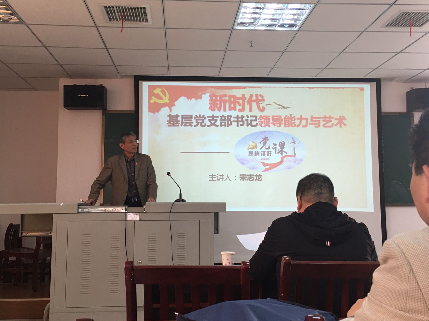 市政府督查专员宋志龙同志以《新时代基层党支部书记领导能力与艺术----怎样讲好党课》为题,以扎实的理论基础和丰富的实际案例,讲授了如何当好党支部书记,并从党课主题选择、如何备好党课、如何讲好党课等方面传授了如何上好党课的方法和技巧,使大家对如何上好党课有了系统、全面的了解和认识。