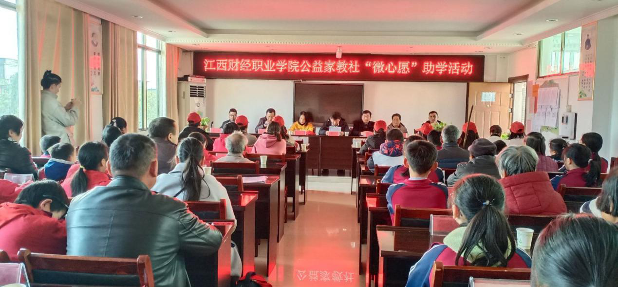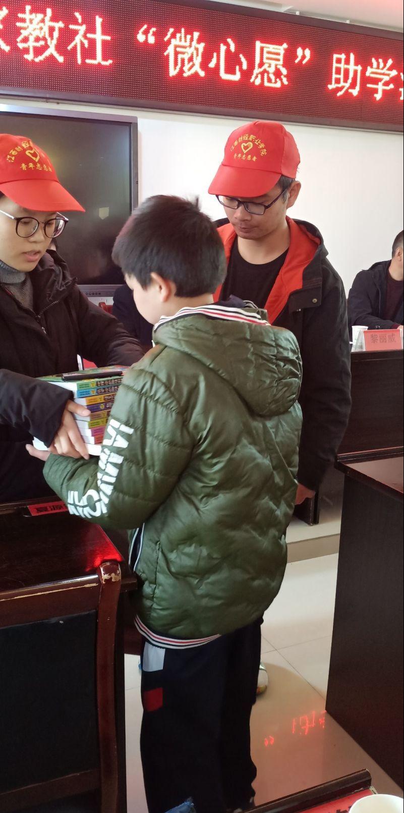 2019年12月6日,江西财经职业学院公益家教社10名志愿者在指导老师柯新华教授带领下,赴武宁县鲁溪镇开展困境儿童“微心愿”助学活动。