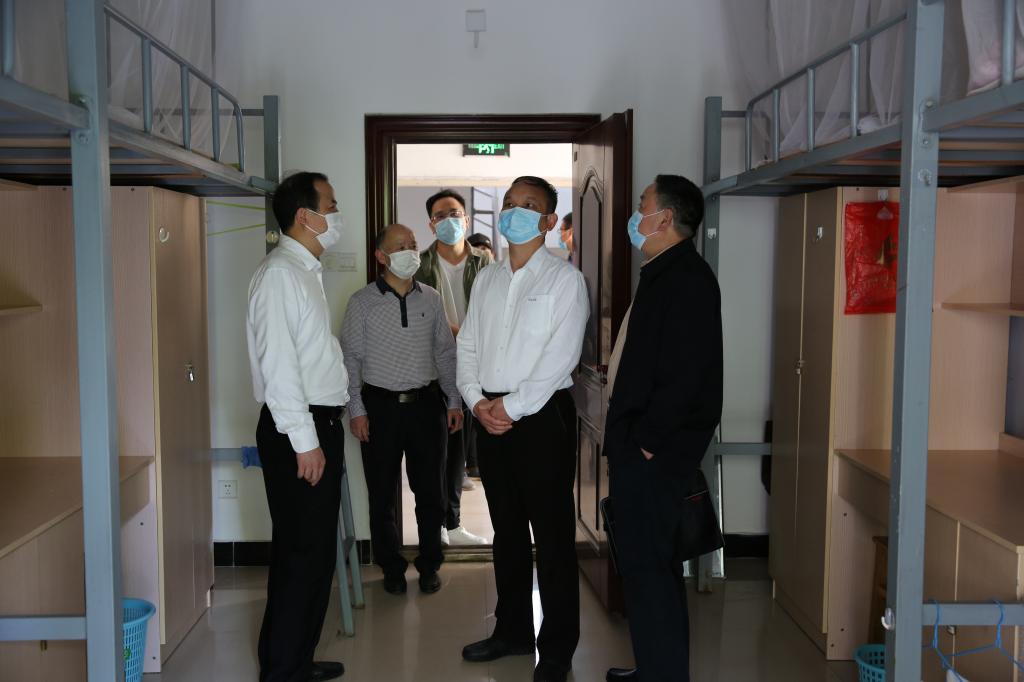 督查组一行深入学生宿舍、食堂、图书馆、教学楼、隔离观察点、物资储备室等场所,重点了解和查看了公共区域卫生消杀、校园人员流动管控、防控工作重点环节落实、防疫物资储备、隔离观察点建设、应急处置预案及应对措施、线上教学、大学生心理在线辅导等情况,全面检查了学校后勤管理、校园安全管理、教育教学管理等工作。