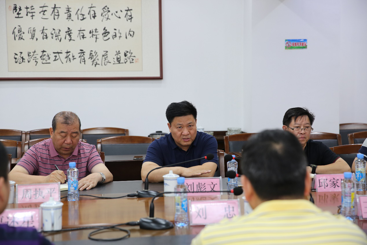 6月18日,中国建设银行江西省分行党委委员、副行长刘忠、信贷审批部廖述星总经理、机构业务部总经理黄文,九江市支行行长王晓新、副行长杨震云一行来我??疾斓餮?。党委副书记、校长刘彪文、党委委员邱家明,合作发展处、教务处、计划财务处等部门负责人参加了调研会。