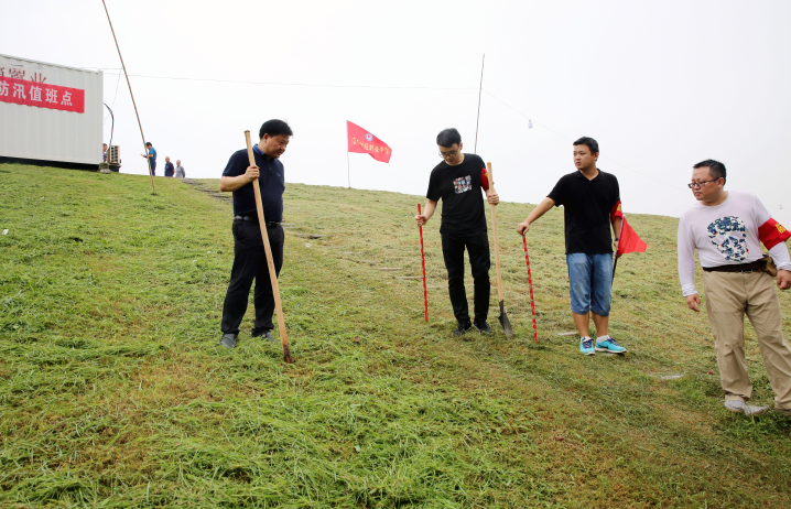 刘彪文对我校值守地段的汛情进行认真分析,并对下一阶段防汛工作作出部署。刘彪文要求队员们密切关注水情,认真细致做好堤坝渗漏和管涌等险情的巡查工作,并特别强调值班人员要注意自身安全。随后,刘彪文带领防汛队员对堤坝进行了巡查。