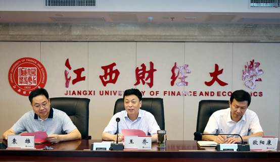 江西财经大学党委书记王乔和相关领导热情接待了李伟副厅长一行,双方就推进江西财经大学和江西财经职业学院两校合作事宜进行了座谈。
