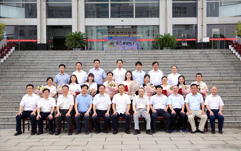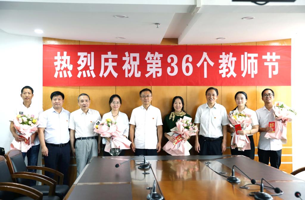 李伟、郭冠华和学校领导为从教30周年教师、受表彰的先进集体和先进个人颁发荣誉证书,并合影留念。