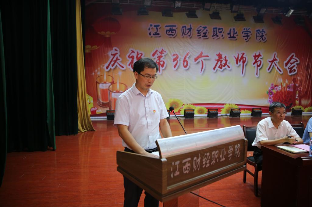 9月10日,我校庆祝第36个教师节大会在英才交流中心隆重举行。省财政厅党组成员、副厅长李伟与全体教职工共同庆祝教师节,省财政厅二级巡视员、人事教育处处长郭冠华,校党委书记林火平,党委副书记、校长刘彪文和学校领导班子全体成员出席,校本部教职员工、离退休教师代表、南昌校区教师代表参加会议。