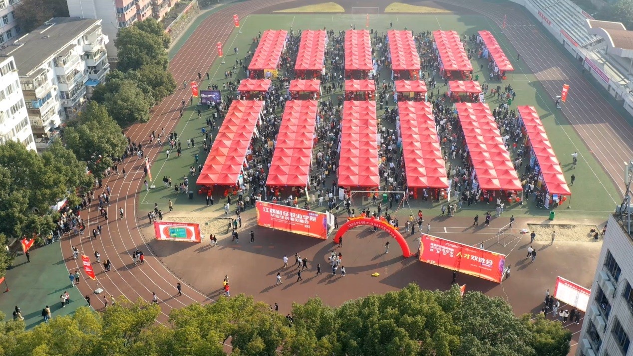 11月14日,我校在田径场举办了2021届毕业生大型校园招聘会,邀请了江西本省、长三角、珠三角及京津冀地区的500家用人单位来校参会。为保障本次招聘活动在疫情防控常态化形势下的顺利开展,学校严格审查进校招聘人员身体状况和单位资质,确保招聘会的安全稳定。校长刘彪文、校党委委员刘超亲临现场指导工作,并与用人单位和毕业生沟通交流,招就处全体同志、各二级学院书记和部分班主任参加了招聘会。