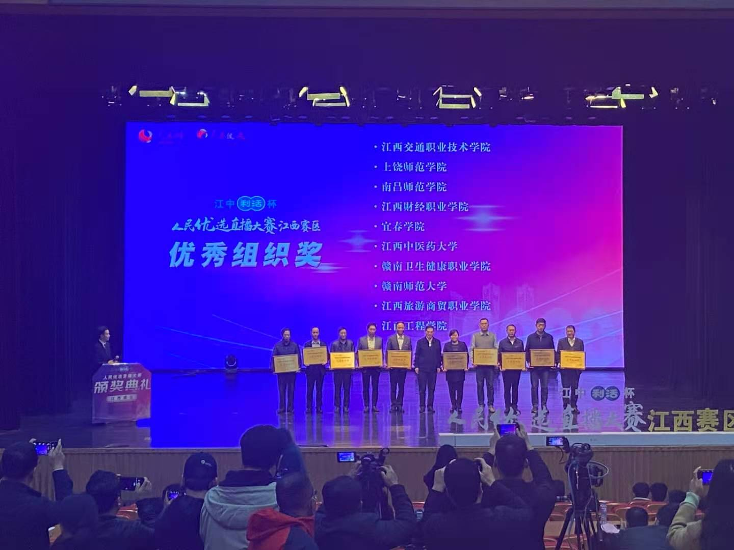 为助力脱贫攻坚和乡村振兴,促进我省消费扶贫,进一步拓展高校毕业生就业创业渠道,11月23日,由省教育厅与人民网(江西)联合举办的“江中利活杯”2020人民优选直播大赛江西赛区颁奖典礼在南昌师范学院举行,我校获“优秀组织奖”。