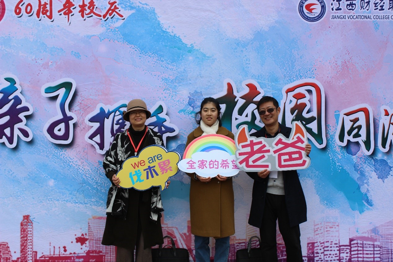 在江西财经职业学院建校六十周年纪念大会上,迎来了三位特殊校友,他们是两代人同出自一个母校的亲子校友。2020年12月5日,学校为他们量身打造的“亲子校园游”活动,让他们有机会回到共同的母校,在洒下青春回忆的校园中共同漫步。