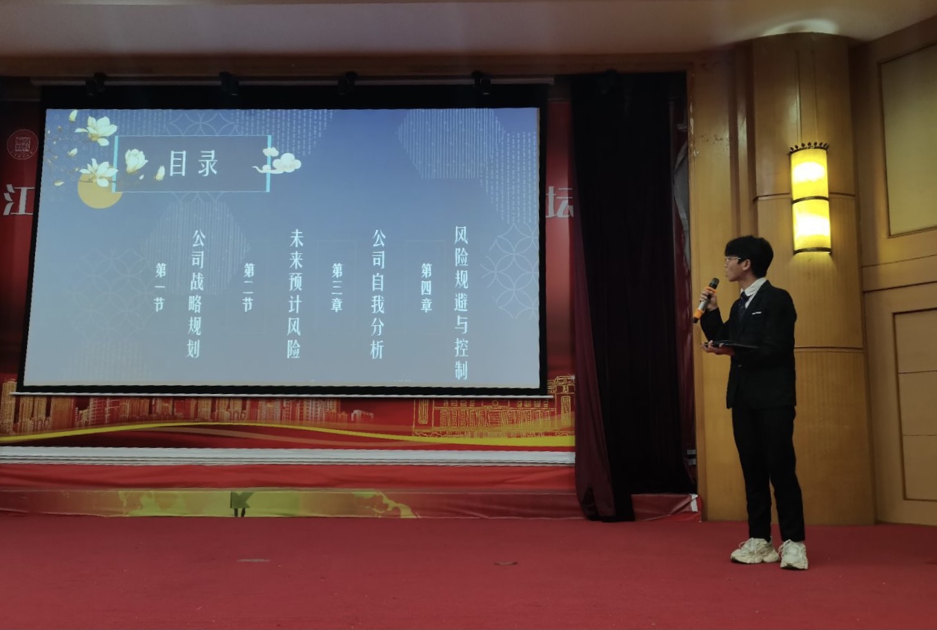 本次财富论坛大赛共设初赛、复赛和总决赛三轮。经过激烈的初、复赛,11支队伍脱颖而出进入总决赛,我校应用型本科代表队带来的“谧膳坊有限责任公司”项目与江西财经大学其他十支队伍进行角逐。该项目运用宣传片介绍了创立背景、企业文化、特色主营业务及发展潜力和对未来的展望,并献上了精彩微舞台剧的演绎。凭借日常“阅读小课堂”扎实的训练和项目的良好运营理念及赛中敏捷的应变能力,最终该项目荣获了本届财富论坛非专业组二等奖的好成绩。